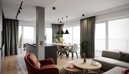 Bodenbeläge: Die Böden in der Wohnung sind mit Fliesen und Parkett gestaltet, was eine harmonische Kombination aus Funktionalität und Ästhetik schafft.