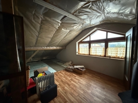 Das Dachgeschoss ist isoliert und wird aktuell als Stauraum genutzt. Der Ausbau zu weiterem Wohnraum ist möglich; ein großes Fensterelement ist bereits vorgesehen.