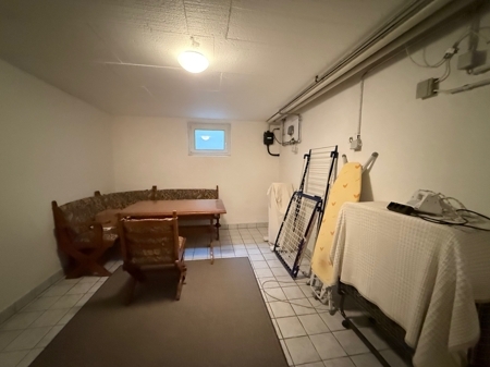 Der komplett geflieste Keller bietet einen Hobbyraum, einen Waschraum sowie den Heizungsraum.