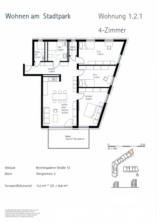 | Anzahl Balkon/Terrassen | 1 | Balkon/Terrasse Fläche | 13 m² |